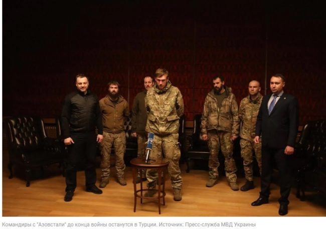 О командирах и договоре с Эрдоганом: «Помимо 200 воинов, мы вернули 5 боевых командиров, за которых пришлось побороться больше всего и дольше всего. Им грозило самое жестокое… 5 супергероев. В обмен мы отдали 55 тех, кто не заслуживает ни жалости, ни сочувствия… Тех, кто воевал против Украины, и тех, кто предал Украину. Тех, кто нам точно не нужен. Украина договорилась с Турцией, я говорил об этом с президентом Эрдоганом, что 5 наших командиров будут находиться в полной безопасности, комфортных условиях и под личной протекцией президента Турции до конца войны. Но мы обеспечим их семьям возможность с ними видеться».