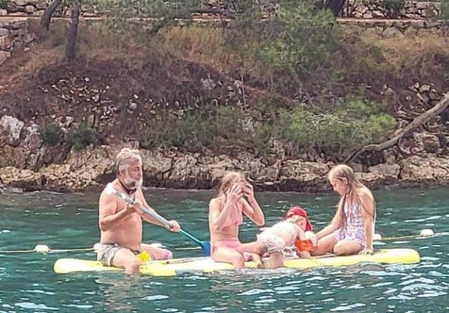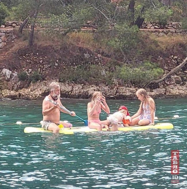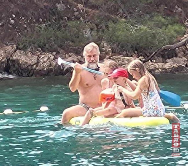 В распоряжении ТаблоID оказались фото 60-летнего бизнесмена с веслом на сапборде и с детьми, вероятно, его внуками.