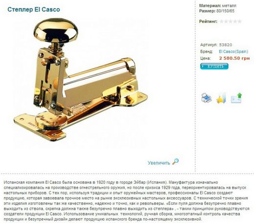 Первое, что бросается в глаза это эксклюзивный степлер испанской фирмы El Casco.