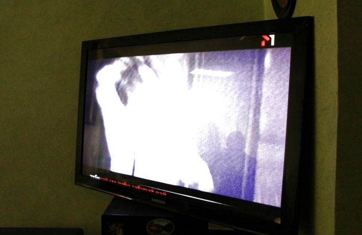 Отвлекает от серых мыслей большой телевизор, на котором показывают клипы, в данном случае какая-то поп-звезда свои прелести показывала.