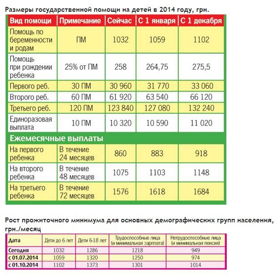 * Максимальный размер помощи по присмотру за ребенком до достижения им трехлетнего возраста с 1153 до 1247 грн.