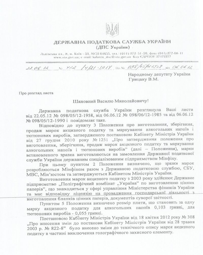 Но вернемся же к документу ГНС на запрос депутата о ценах на акцизки. В ответе, подписанном Александром Клименко, говорится, что цены на марки остались прежними – как мы и писали ранее! (См. ниже фото документа).
