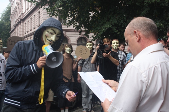 «К акции присоединяются молодые люди через интернет. Есть надежда, что наконец люди начнут протестовать не только в социальных сетях, но и в реальном мире. Нам известно, что под масками Гая Фокса будет как минимум двое депутатов Ивано-Франковского областного совета», — сказал Гавриляк и добавил, что если власть подпишет законопроект, то в Киеве будет организован второй Майдан.