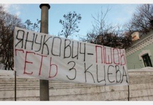 Активистов «ДемАльянса» задержали за плакат с надписью «Янукович, пошел вон из Киева»