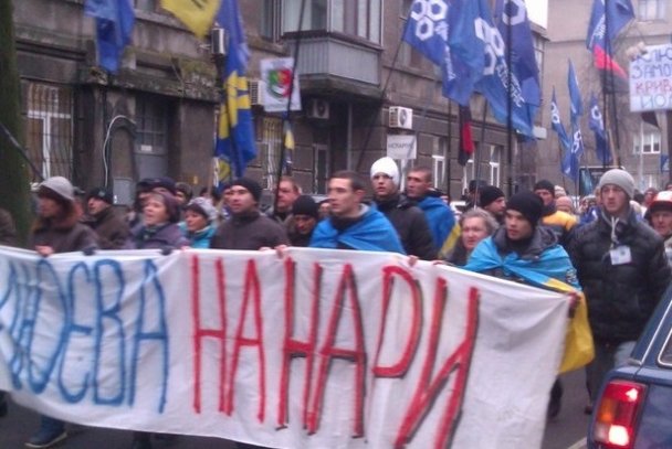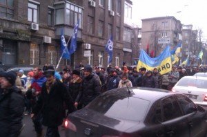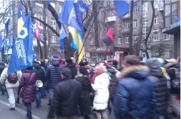 Сегодня, 18 декабря, в Киеве по ул. Институтской идут около полутора тысяч евромайдановцев. Как пишет Сегодня, митингующие идут в три ряда, скандируя "Клюєва – на нари, Захарченко – до пари".