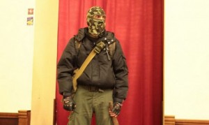 Митингующие уже начали готовиться к обороне здания КГГА. Мужская половина при помощи скотча привязала к ногам куски дерева, толстый слой утеплителя, а в руки взяли палки.