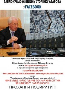 В Facebook появилось движение за изгнание премьер-министра Украины Николая Азарова из этой социальной сети.