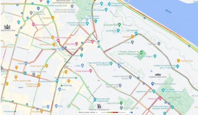 Стоит отметить, что согласно данным Google Maps, из-за митинга на центральных улицах Киева образовались пробки.