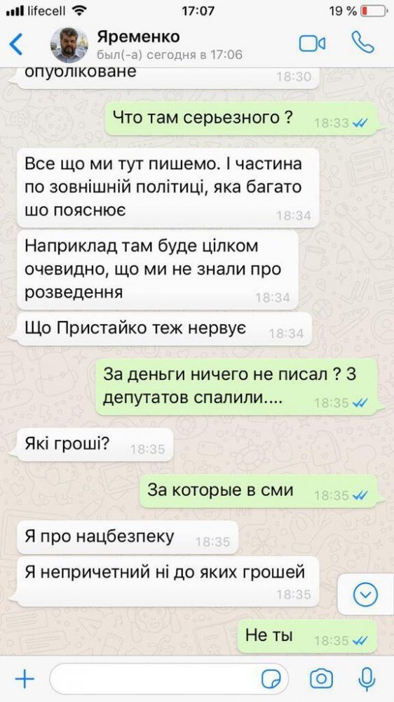 Всплыла также переписка Яременко с женщиной по имени Галина, с которой у него ранее были отношения. После нежных сообщений она попросила нардепа помочь купить квартиру – дать ей 10 тысяч долларов. «Это выше моих возможностей», – ответил нардеп.