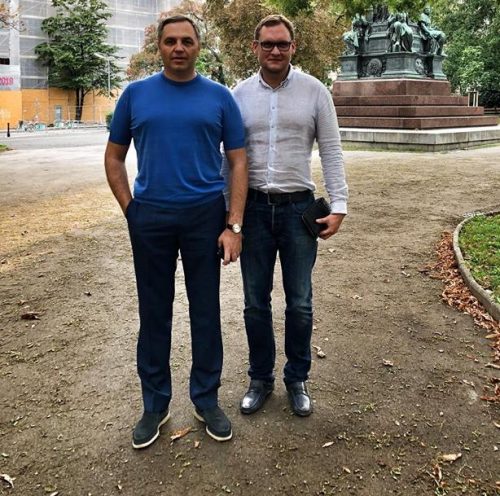 Андрей Смирнов и Андрей Портнов летом 2018го. Замглавы Офиса Зеленского считает выдающимся юристом «решалу Януковича» (о котором мы писали: https://ord-ua.com/2019/11/19/kak-reshala-yanukovicha-po-familii-portnov-reshaet-dela-majdana/). С соавтором «драконовских законов» и «АТО имени Щеголева», Смирнов встречался в «австрийской ссылке». Клиентам Смирнов предоставляет полный пакет услуг: назначает «стрелки» и запугивает. Видно, что многому научился у старшего товарища.