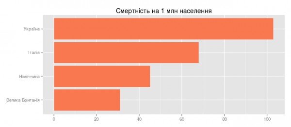 Показник смертності на 1 млн населення в Україні складає 103, в той час як, наприклад, в Італії — 68, Німеччині — 45, Великій Британії — 31. Слід зважати, що кількість автомобілів в Україні є зачно нижчою, ніж в країнах Європи: 146 одиниць на 1000 населення, проти, наприклад, 510 в Німеччині (дані 2010 року).