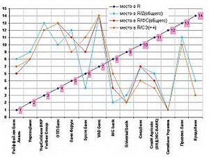 рейтинга эффективности вероятного воздействия всего медиаполя, созданного банком, на целевые группы, R (ВВ) — общего и по каждому фактору. Данные рейтинга дают ответ на вопрос о том, какова вероятность донесения банком информационных месседжей до экспертных групп. Чем выше абсолютное значение R (ВВ), тем с меньшими медиаусилиями, более эффективно банк достигает репутационных показателей;