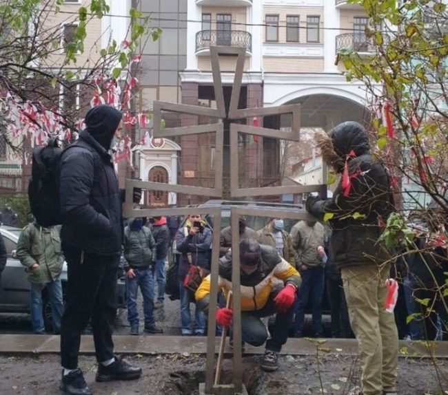 В Киеве напротив входа в здание посольства Беларуси установили памятный крест, чтобы почтить память погибших участников массовых протестов против президентства Александра Лукашенко. Крест установили эмигранты из Беларуси, а в мероприятии также принимали участие неравнодушные жители Киева, сообщает «Белсат».