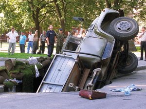 Е. К. Нарушение технологий при ремонте и строительстве дорог — не вопрос ГАИ. Например, в Киеве к ямочным ремонтам, думаю, претензий быть не может. Тогда как в регионах по-прежнему можно встретить женщин в фуфайках, забрасывающих ямы асфальтом из машины... Но, в любом случае, латание дорог — не от хорошей жизни. Можно ремонтировать любую вещь, но если она старая и отжила свое, толку будет мало.