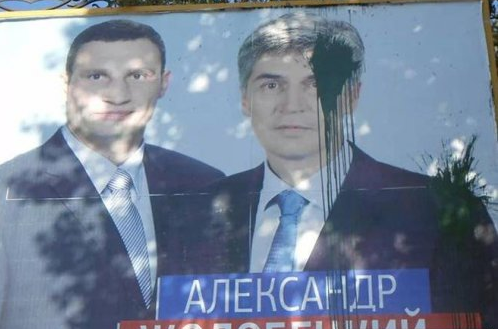 Но все это позволило Жолобецкому залепить Николаев бигбордами, на которых он изображен как представитель Кличко, правда сами плакатики были слеплены с помощью фотошопа и худосочный Жолобецкий на них оказался ДАЖЕ КРУПНЕЕ ЧЕМПИОНА МИРА ПО БОКСУ, но свою функцию они выполнили – рейтинг «самовысуванистому оппозиционеру» подтянули.