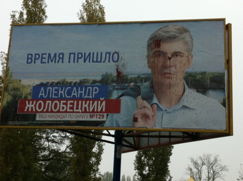 Да и в отношении задействованных административного ресурса и брошенных на проведение избирательной кампании финансовых средств, тогдашний «самовысуванец» Жолобецкий кандидату от тогдашней партии власти – ПР ничем не уступал. И практически пол-Николаева было сначала завешено бигбордами с уверениями Жолобецкого, что ЕГО ВРЕМЯ ПРИШЛО.