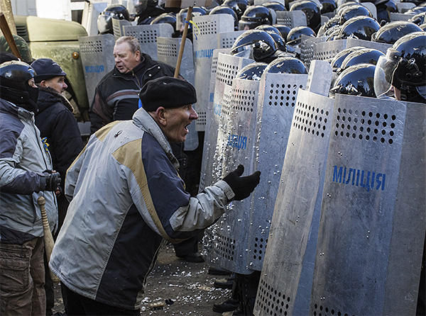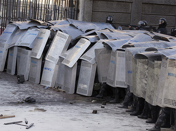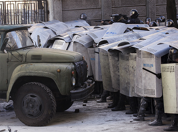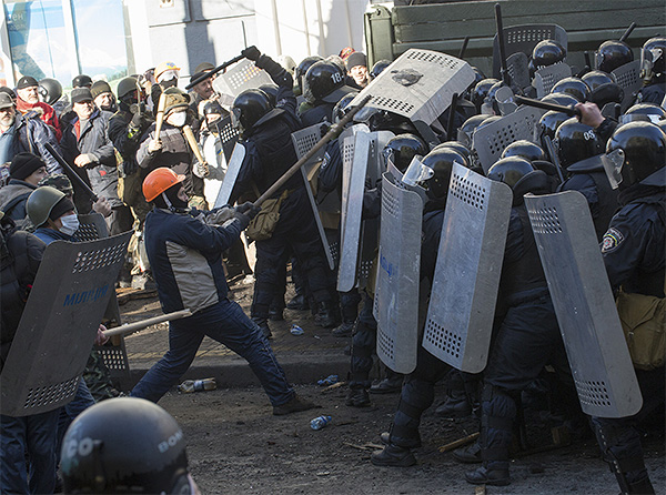 Бойцы против митингующих в Киеве. Фото