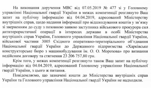 Это дало основания военной прокуратуре обратиться в Хозяйственный суд с иском к ХКБМ о возмещении 23 млн гривен. Правда, уже несколько лет дело безуспешно тянется в суде. По свежей информации от Национальной гвардии, пока никакие средства не возвращались.