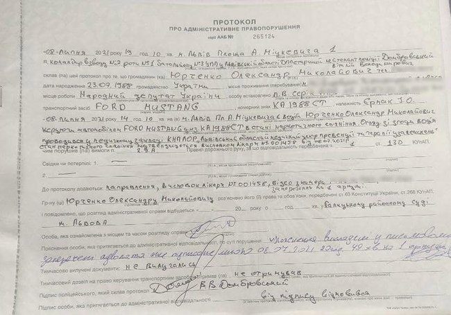 По данным «Варты», ДТП произошло на площади Мицкевича в центре Львова. Юрченко на автомобиле Mustang выезжал задним ходом и въехал в автомобиль Volkswagen Jetta. А когда его водитель попытался снять происходящее на видео — выбил у него из рук и отобрал смартфон.