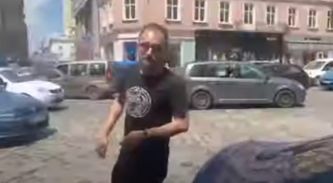 В YouTube опубликовано видео, на котором водитель выходит из автомобиля Mustang и выбивает из рук снимающего его мужчины телефон. Водитель в темных очках виден на съемке в течении 1 секунды.