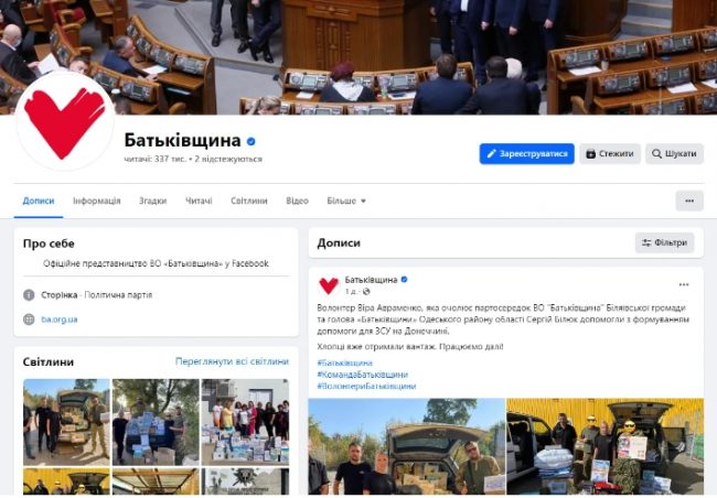 На официальной странице ВО «Батькивщина» в этой же соцсети также никак не отреагировали на события в Сумах: накануне, 2 октября, администраторов страницы гораздо больше интересовало, как их партийцы «помогают с формированием помощи для ВСУ в Донецкой области».