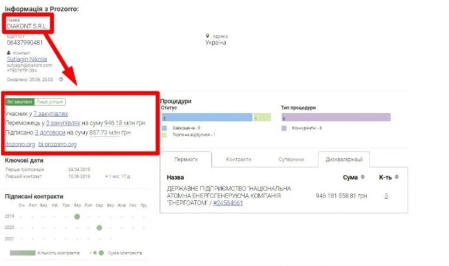 Несмотря на санкции, компания Diakont победила за последние годы уже в 3 крупных тендерах НАЭК «Энергоатом» на общую сумму в почти миллиард гривен (946,18 млн. грн.).