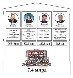 Получится или нет – вопрос философский. В следующем году на государственные закупки собираются потратить 1,2 миллиарда гривен. Сторонние наблюдатели уже гадают, кто из названной четверки крупнейших фармацевтических баронов станет хозяином вместительной бюджетной корзины Минздрава. В одном можно не сомневаться: сверхприбыли снова осядут в нужных карманах, и в нужный момент часть из них наверняка потратят, что бы сохранить прогнившую систему на долгие годы.