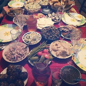 "А у меня грузинское застолье! – пишет Анфиса Чехова. - Моя свекровь готовит так, что пальчики вместе с руками проглотишь! Из-за стола можно только выползти!"