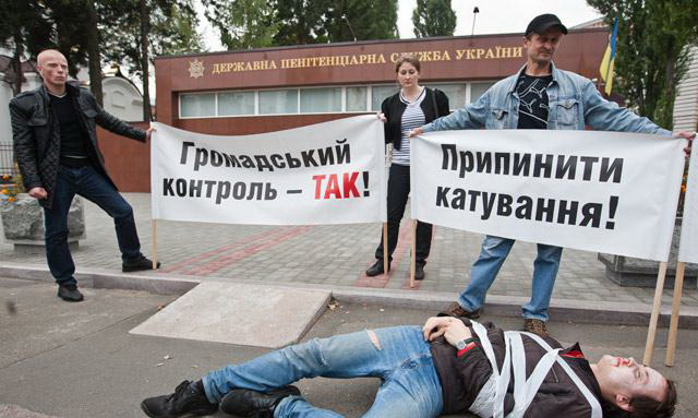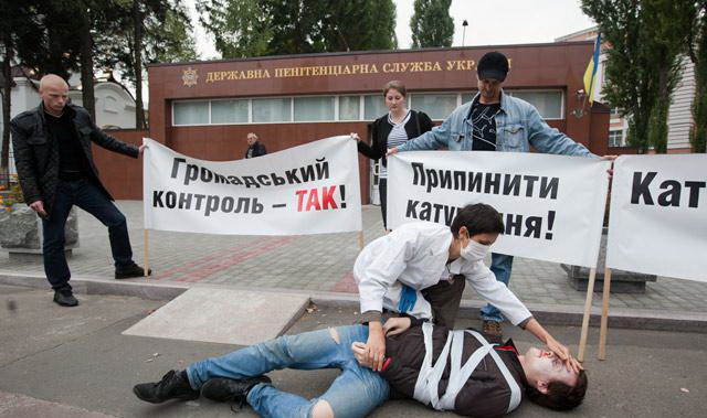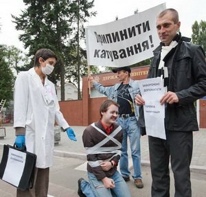 Под зданием Государственной пенитенциарной службы активисты Института правовых исследований и стратегий и Харьковской правозащитной группы (ХПГ) провели уличную акцию "Больных в СИЗО должны лечить!".