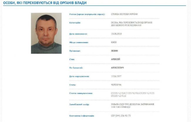Из поля зрения правоохранителей Левин исчез 19 августа 2018 года.