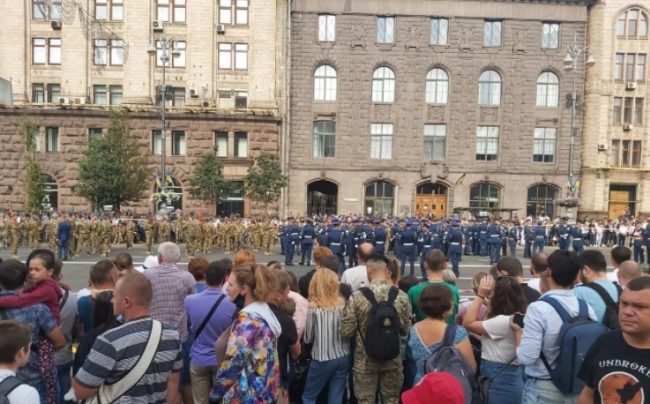 В 10:00 на Крещатике начался военный парад. Президент Владимир Зеленский выступил с речью и вручил государственные награды. Затем по главной улице столицы прошли военнослужащие разных родов войск, пролетела авиация и прошли колонны военной техники.