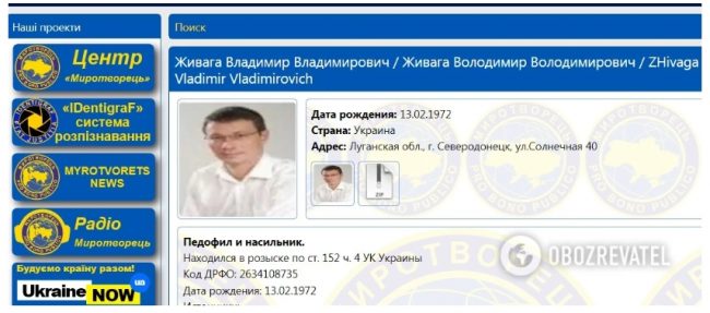 В 2015 году информация о розыске Владимира Живаги появилась и на сайте «Миротворец», однако только в через два года беглый педофил попал в руки правоохранителей. Причем, в Киеве.