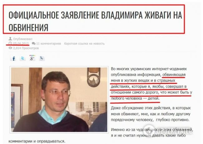 В 2012 г. Владимир Живага рассылал в СМИ опровержения и грозил судебными исками Скриншот с сайта lisichansk.in.ua