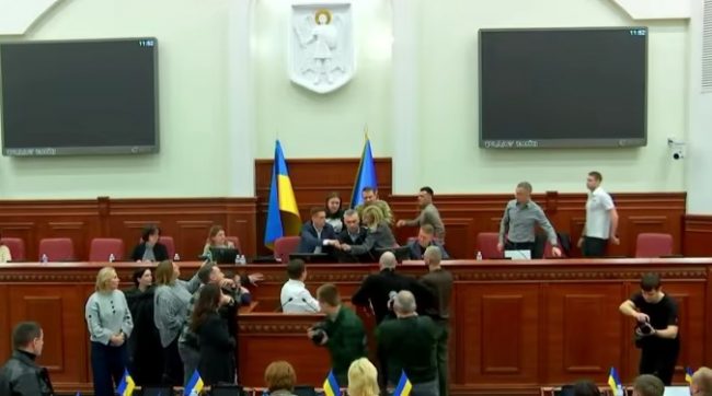 На заседании сессии Киевского городского совета ІХ созыва 3 апреля депутаты заблокировали трибуну и устроили потасовку в президиуме с требованием поставить на голосование вопрос о досрочном прекращении полномочий заместителя городского головы, секретаря Киевского городского совета Владимира Бондаренко.