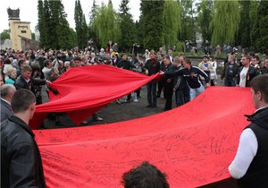 "9 мая 2011 года вся Европа вздрогнула. В столице Украины Киеве, на Крещатике, реяли красные флаги. Президент украинского государства Виктор Янукович стоял рядом с портретом тирана, стоял рядом с портретом Иосифа Сталина. 9 мая украинцы и львовяне вздрогнули. Под красными флагами в городе Львове с помощью власти, с помощью милиции еще раз была изнасилована наша память, еще раз были изнасилованы наши деды и прадеды, и стоны из тюрьмы на Лонцкого были слышны вплоть до Холма Славы", – отметила в выступлении Сех.