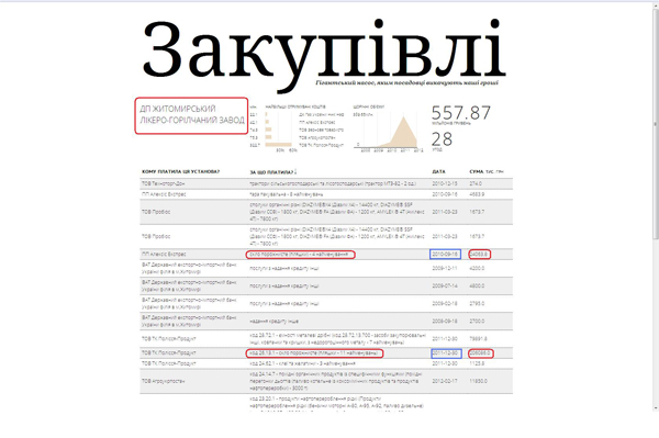 "Із вражаючою періодичністю на сайтах з’являються чергові повідомлення про "зловживання" на Житомирському лікеро-горілчаному заводі. Одне з останніх інформує про нібито закуплені на суму 206 млн грн пляшки.
