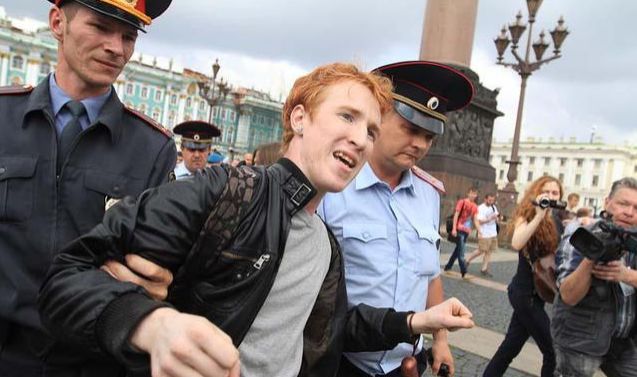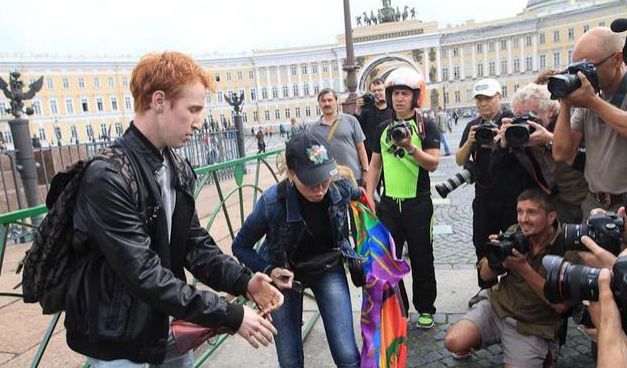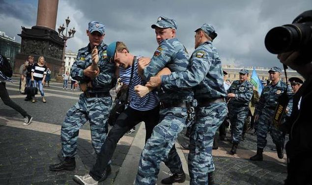 Акция ЛГБТ-активиста на Дворцовой площади закончилась дракой десантников и бойцов ОМОНа.