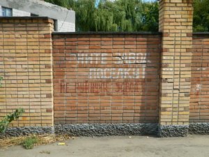 Надписи, оставшиеся с 2007 года на ограде предприятия.