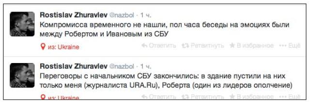 На переговоры со СБУ на счет освобождения Губарева отправился глава Свердловского регионального отделения политической партии «Другая Россия» Ростислав Журавлев. Который в ходе всей этой истории выкладывал в twitter записи:
