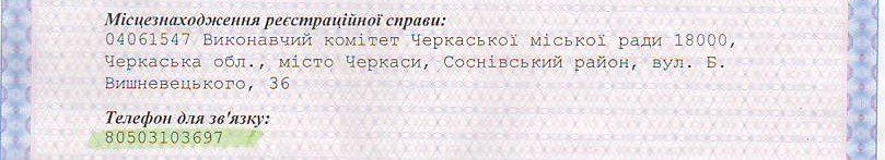 При регистрации своей структуры он даже указал свой мобильный телефон в качестве контактного телефона непосредственного руководителя свой личный (служебный) мобильный телефон 0503103697, в доказательство чего предоставляем справку от государственного регистратора (оговорим, что данный документ весьма значительный по объему, потому мы ограничиваемся лишь цитатами (извлечениями) из указанного документа (кто желает лично проверить достоверность наших выкладок – имеет возможность получить сей документ в полном виде у любого государственного регистратора в районных госадминистрациях (исполнительных комитетах) в течении нескольких минут, официально заплатив несколько десятков гривен стоимости распечатки сведений на бланках).