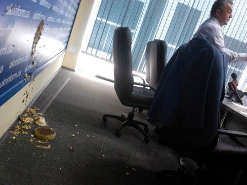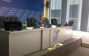 Сегодня группа лиц, в ходе проведения пресс-конференции в Укринформе закидала тортами экс-генпрокурора Олега Махницкого.