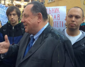Колишнього ректора Податкової академії Петра Мельника після засідання суду з питання поновлення його на посаді, активісти закидали яйцями.