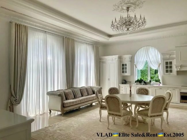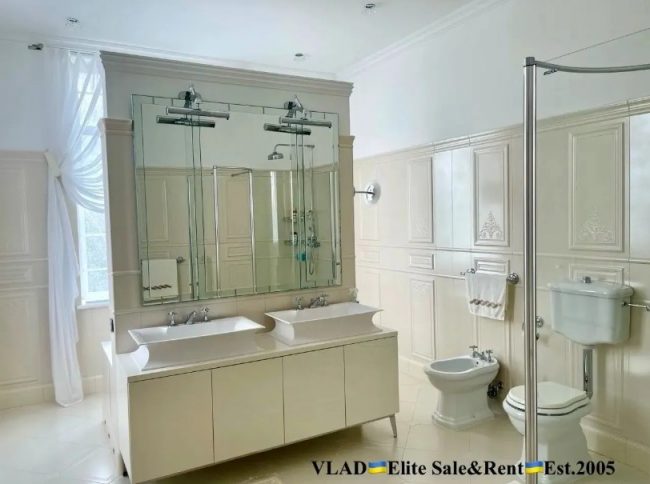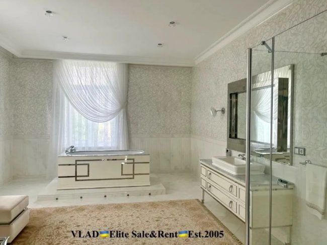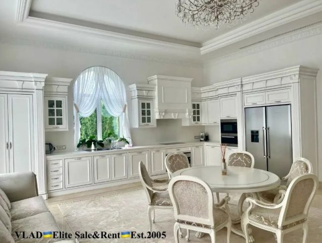 «Дизайнерский ремонт. Дом полностью укомплектован мебелью. Спальни, мягкая мебель, серванты – лакшери-бренда VISIONER. Кухня Luciano Zonta. Санузлы – плитка Piemme VALENTINO, VENIS, мебель коллекции OASIS; сантехника DEVON&DEVON» – так пишут в объявлении.