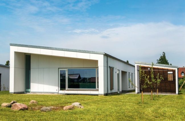 Энергоэффективный дом должен иметь простой блок, предпочтительно с прямоугольной или квадратной проекцией. При использовании эркеров, мансардных окон мы подвергаем здание тепловым мостам, которые влияют на потери энергии. Кроме того, лучшим решением является использование одинарной или двускатной крыши. Более энергоэффективным решением является строительство двухэтажного дома по сравнению с одноэтажным домом. Это помогает уменьшить потери энергии через меньшую площадь крыши.