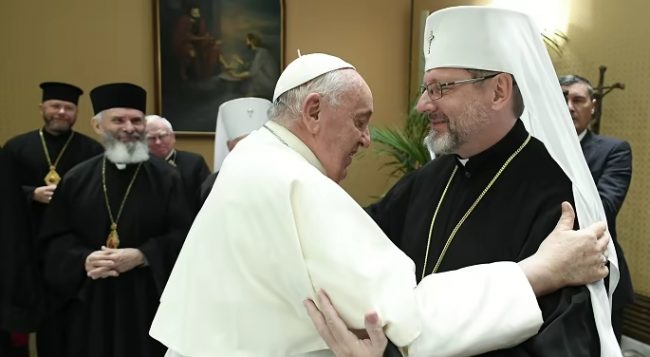 Украинские Греко-Католические епископы встретились с Папой Франциском и заявили ему, что восхваление имперского прошлого России «причинило боль украинскому народу».