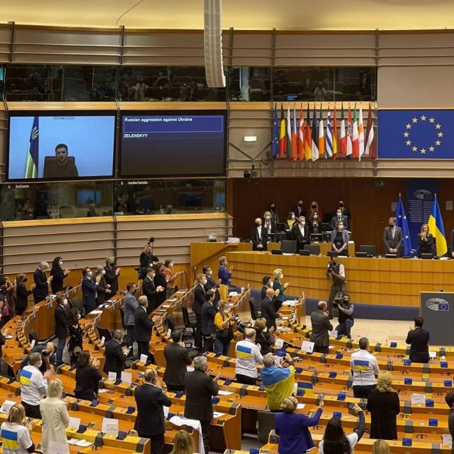 Тем не менее, Европарламент принял заявку Украины на членство. На внеочередном заседании Европарламента перед депутатами в онлайн-формате выступил сам Зеленский. Он рассказал о происходящем в стране, сообщил, что Россия обстреливает не только военные объекты, как утверждает, но и гражданскую инфраструктуру в следствии чего погибло 16 детей.