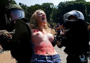 Акция FEMEN продолжалась всего несколько секунд: работники правоохранительных органов, которые отгораживали публику от проезжей части, по которой двигался кортеж высокого гостя, сразу силой убрали участниц протеста и отвели их в полицейское авто. Как пишет местная пресса, сам Обама вряд ли смог увидеть участниц топлес-акции.