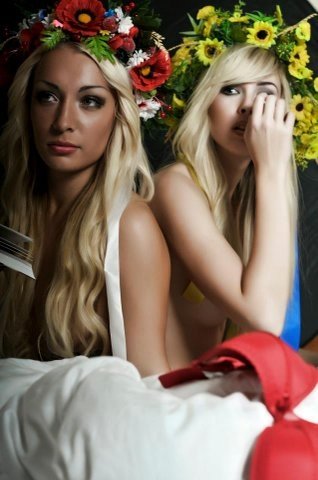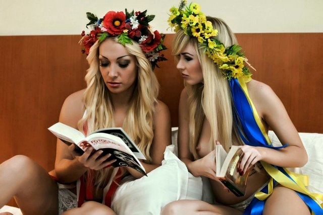 Украинские блондинки из движения FEMEN пропиарились и в Польше, поучаствовав в «книжной» фотосессии.