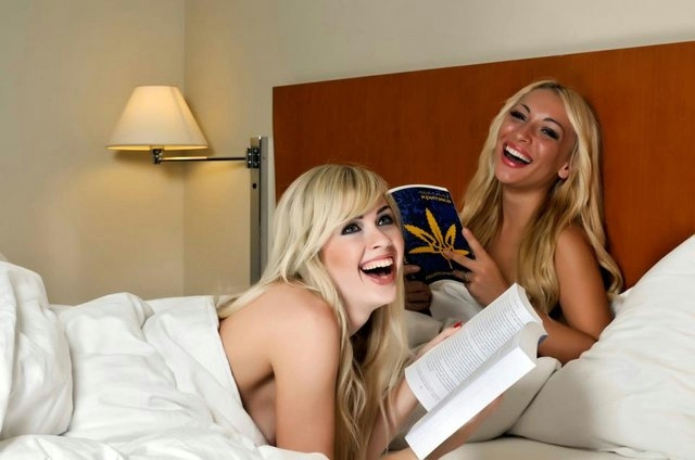 Скандальные активистки позируют с книгами в руках, лежа в кровати.