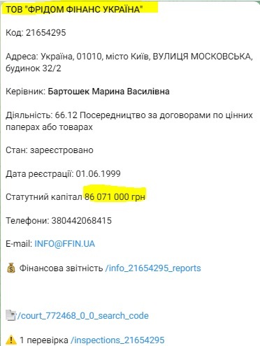 ООО «Фридом Финанс Украина» – скандальная инвестиционная компания со статусным фондом более 86 миллионов гривен.